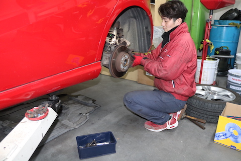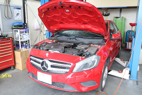 ベンツA180のお客様、ブレーキパッド交換でご入庫。