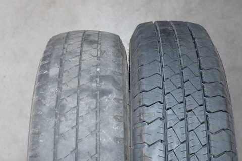 右の新品と比べて、左側はほとんど溝がないのがわかりますね。