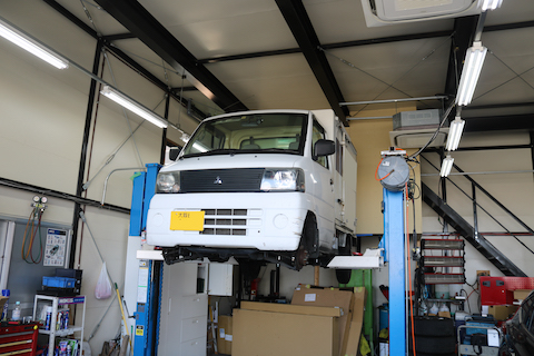 三菱ミニキャブ冷凍車のお客様、車検でご入庫。