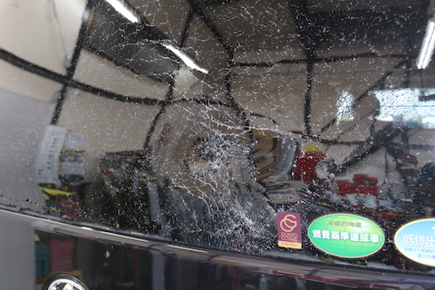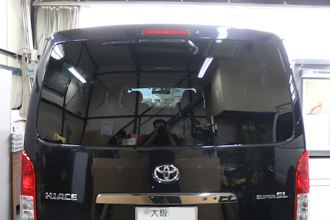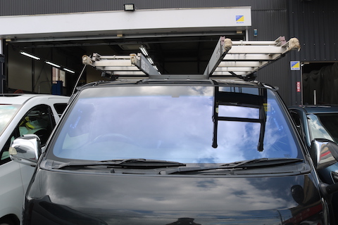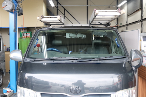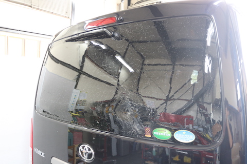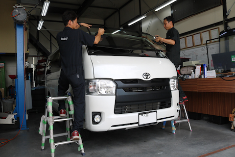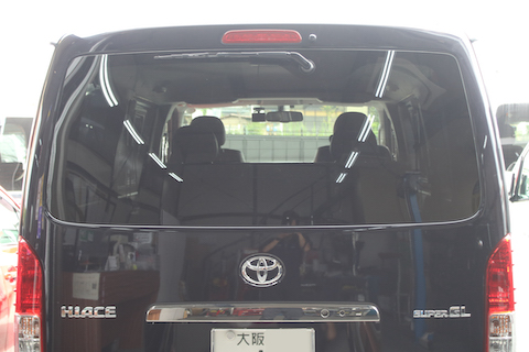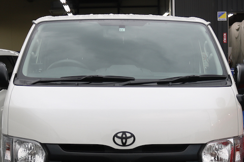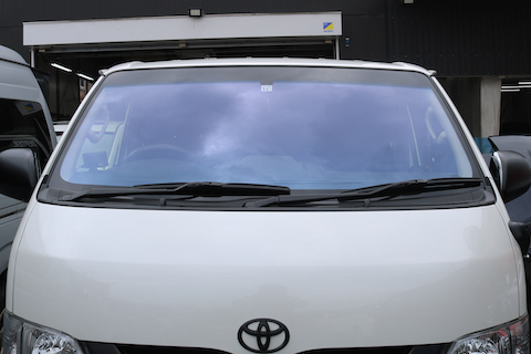 ハイエースにはやっぱりにあう青色のフロントガラス!