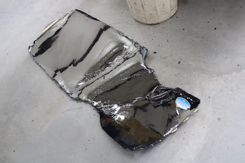 損傷部分の鉄板をカットして、新しいパネルを取り付け。
