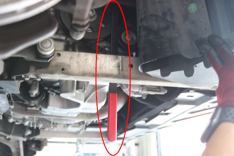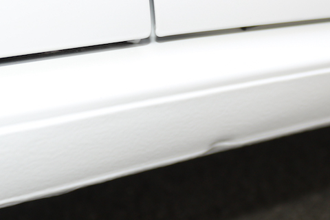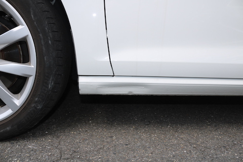 左下側ロッカーパネル部分がへこんでしまったとご来店。