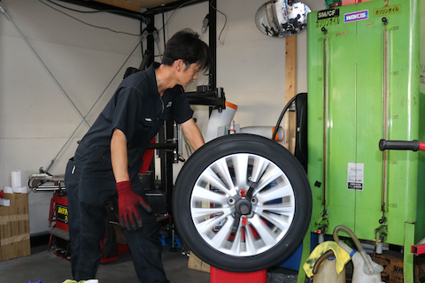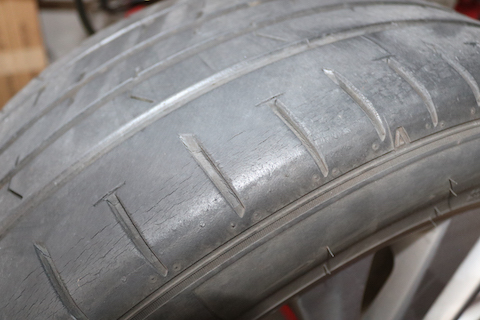 左前タイヤ後側部分、ここは表面がブツブツになっている所。