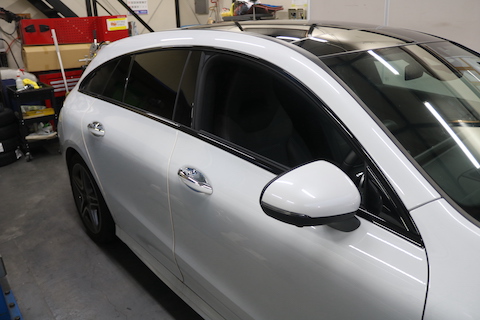 ベンツ CLA200dのお客様、窓ガラス周りのメッキモール白サビのお悩みで、