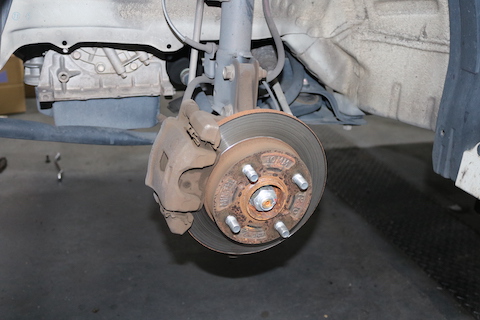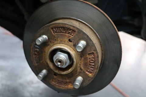 タイヤを外して、ブレーキ周りをチェックすると、