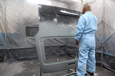新品のリアゲートは色がついていないので、