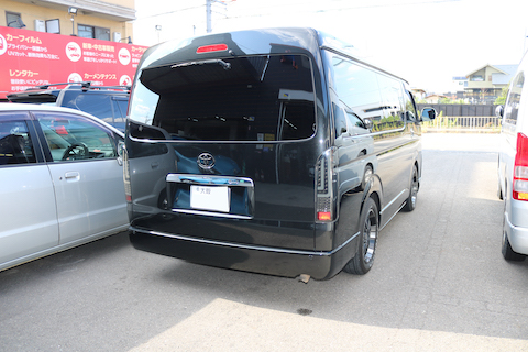 ハイエースワイドのお客様、リアゲートが損傷したとご相談。