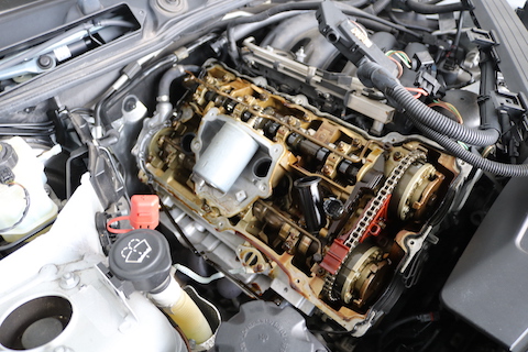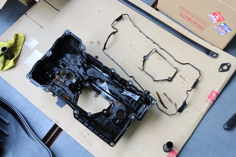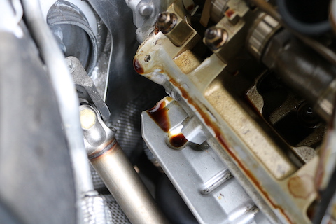 エンジンカバーからのオイル漏れでパッキン交換