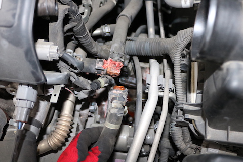 原因は、ラジエーターホース部分の破損。