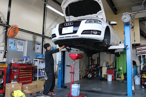 アウディのお客様、車検でご入庫。