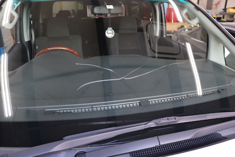 フロントガラスが飛び石によりヒビが一気に伸びてしまい、