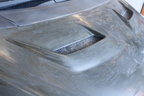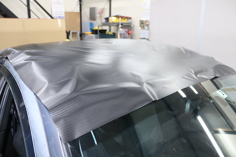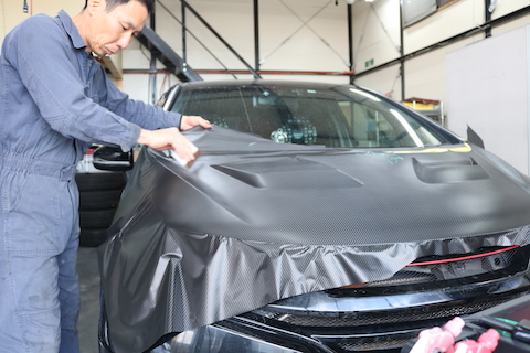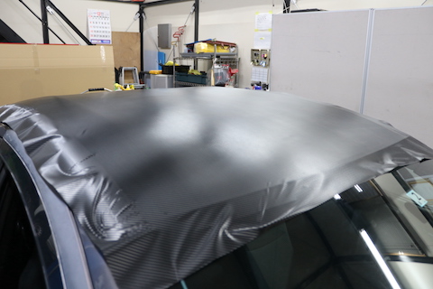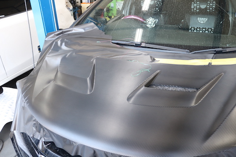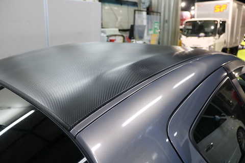そこで、お客様はカーボンブラックラッピングで補修する方法に決め、