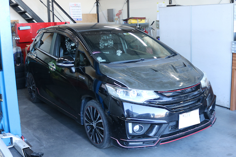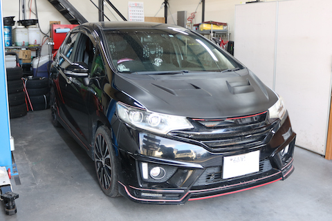 フィットのお客様、痛んだボンネットの補修でご来店。
