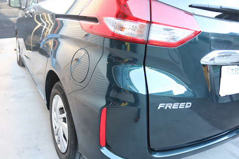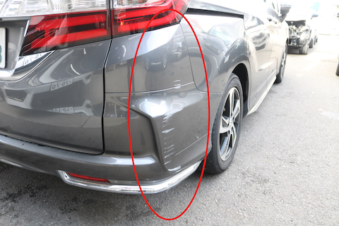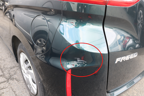 フリードのお客様、左リアバンパーに傷ができたと相談。