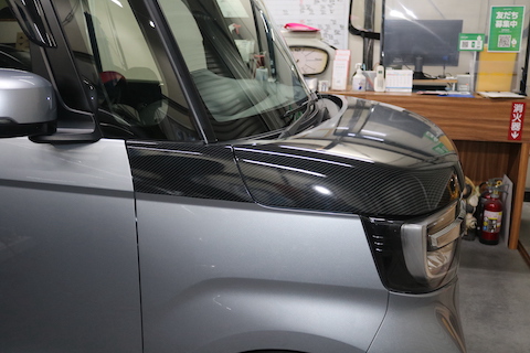 ボンネット後側を延長した感じでフェンダー部分にも施工させていただきました。