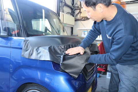 塗装剥がれのルーフをカーボンブラックラッピングで補修!