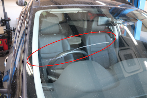 運転席側に飛び石被害でヒビが大きく伸びてしまっています。