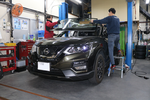 エクストレイルのお客様、フロントガラスが割れてしまったとご来店。
