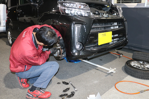ムーブのお客様、ブレーキ踏むとキーキー音がすると緊急入庫。