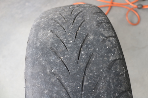 こちらのタイヤは、溝が無くなっているので危険な状態。