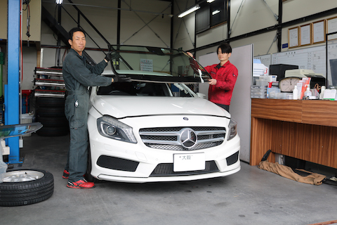 社外品のフロントガラスをご用意してコストを大幅削減。