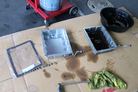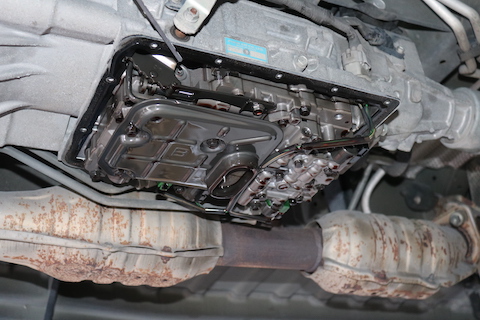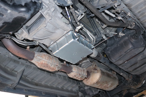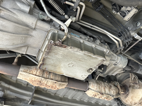 オートマ部分のオイルパンが損傷してしまい、オイルが漏れており、
