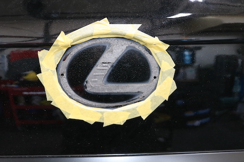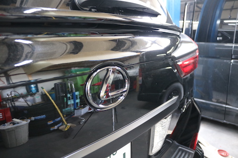 レクサスLX570のお客様、エンブレム交換でご入庫。