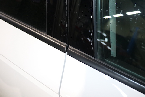 アウディ A4のお客様、ドアメッキモール部分の白さびが気になるので、