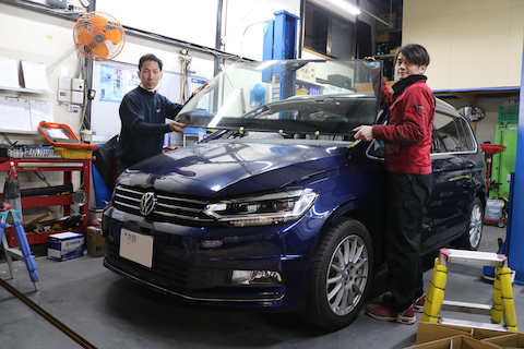 車両保険で純正ガラスをご用意して交換することになりました。