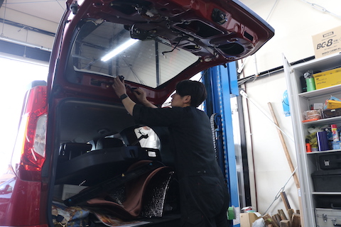 ミニキャブのお客様、リアゲートを当ててしまいガラスが割れてしまったとご相談。
