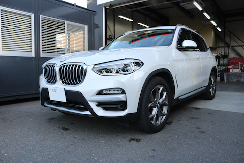 BMW X3のお客様、左側を損傷したとご入庫。