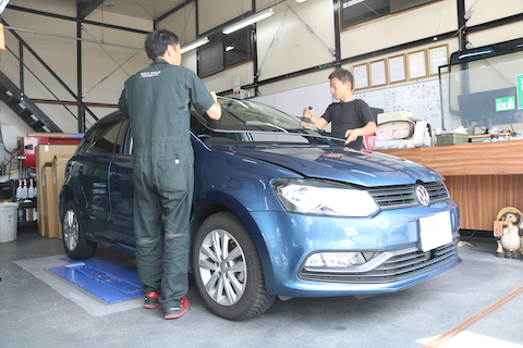 フォルクスワーゲンのお客様、フロントガラスが割れてしまったとご相談。