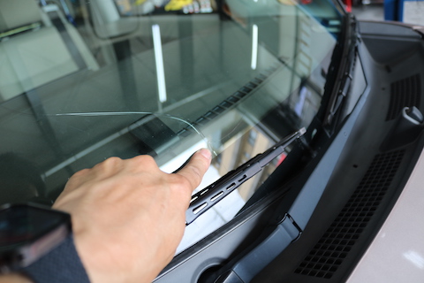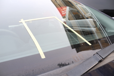 下からひびが伸びており、残念ながらフロントガラス交換となりました。