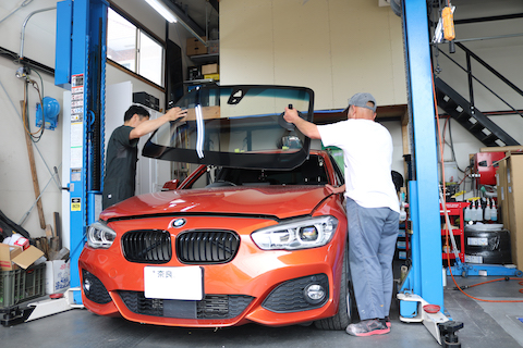 BMWのお客様、フロントガラスが割れてしまったとご来店。