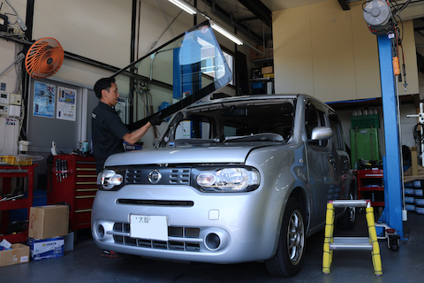 キューブのお客様、フロントガラス交換のご依頼をいただき、