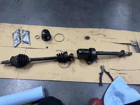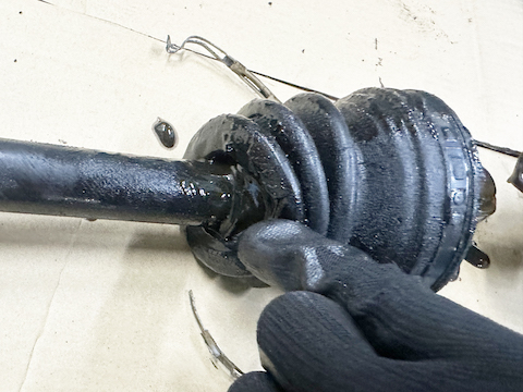点検整備の中で見つかったドライブシャフトブーツ破れの修理をさせて頂きました。