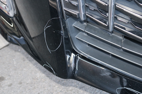 下側にあった傷やグリルが奥に食い込んでいたのも、
