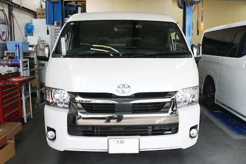 ハイエースワイドのお客様、フロントガラスが割れてしまったとご相談。