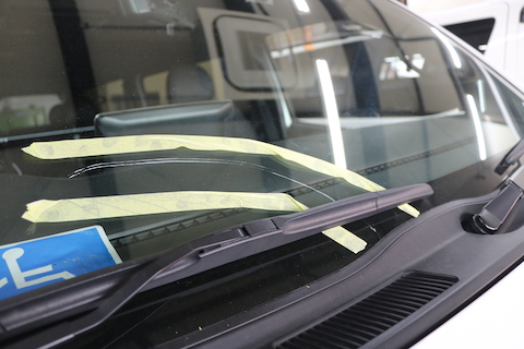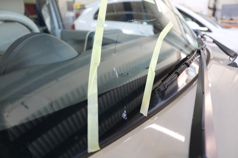 フロントガラスの大きなひび割れ、ガラス交換で修理!