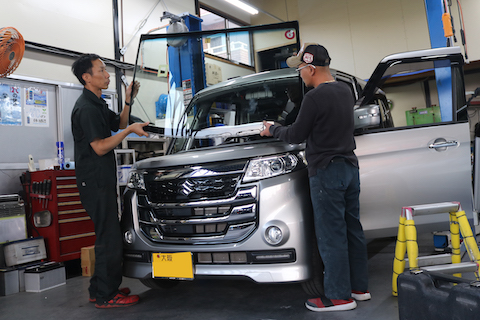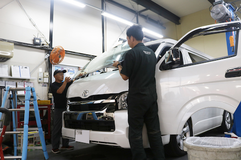 車業界では、ガラス屋さんにお願いして作業するのですが、