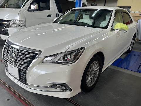 クラウンの左ドアミラーを当ててしまい破損してしまったとご来店。