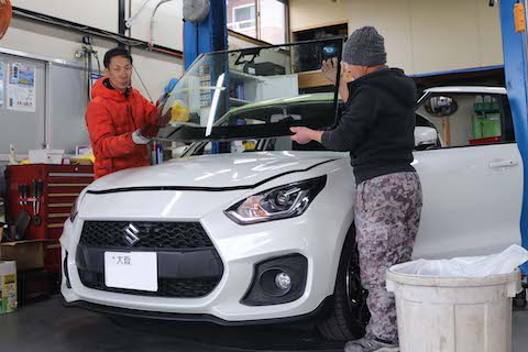 スイフトのフロントガラス交換を純正同等の社外品で対応!