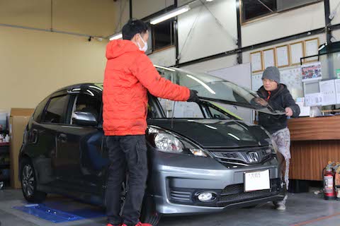 フィットのお客様、フロントガラス交換のご依頼を頂きました。