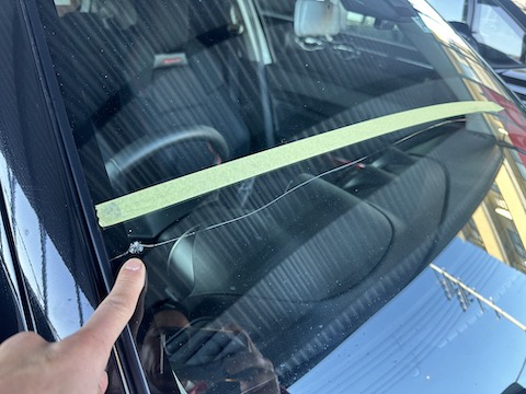 スイフトのお客様、フロントガラスにヒビが伸びてしまったとご来店。