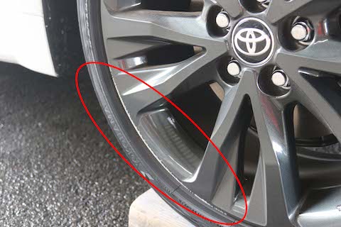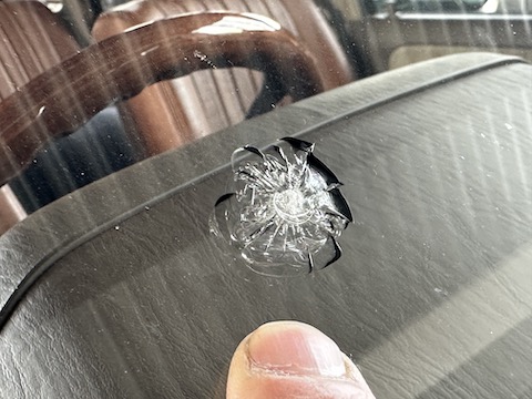傷を確認すると、セロハンテープ貼っている部分に飛び石被害、