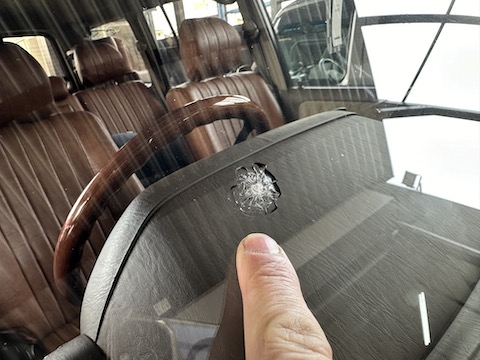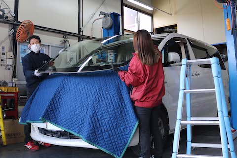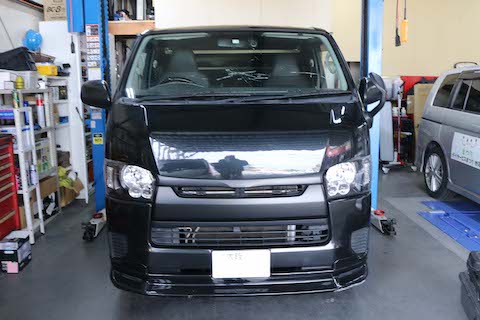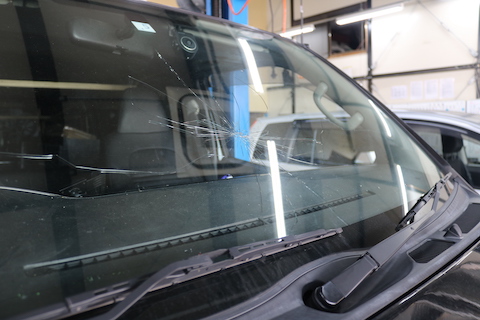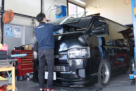 ハイエースのお客様、フロントガラスが割れてしまったとご来店。