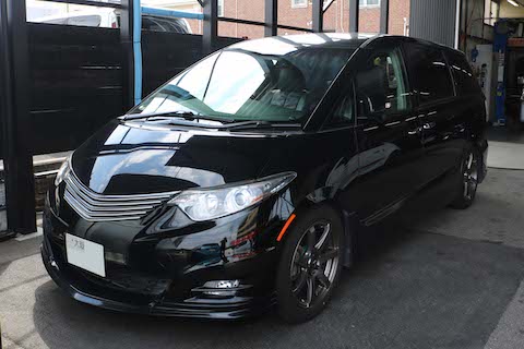 エスティマ断熱対策でフロントガラスを青色のコートテクトに交換