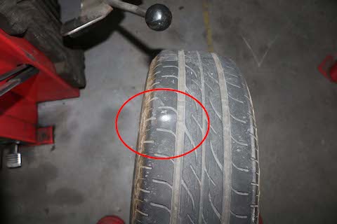 車の荷重がかかる部分なので、修理後にパンクする恐れがあります。