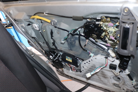 調べると、ドアの中にある自動でスライドドアを動かす装置の故障。