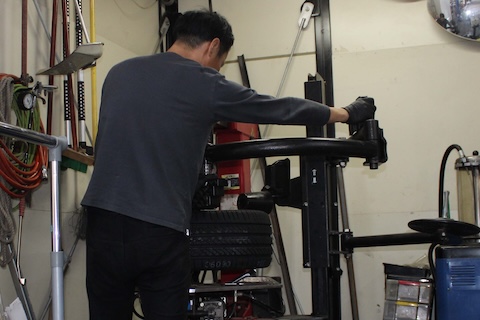 へこみ部分を少しずつ丁寧に押し戻していく精密な板金技術です。